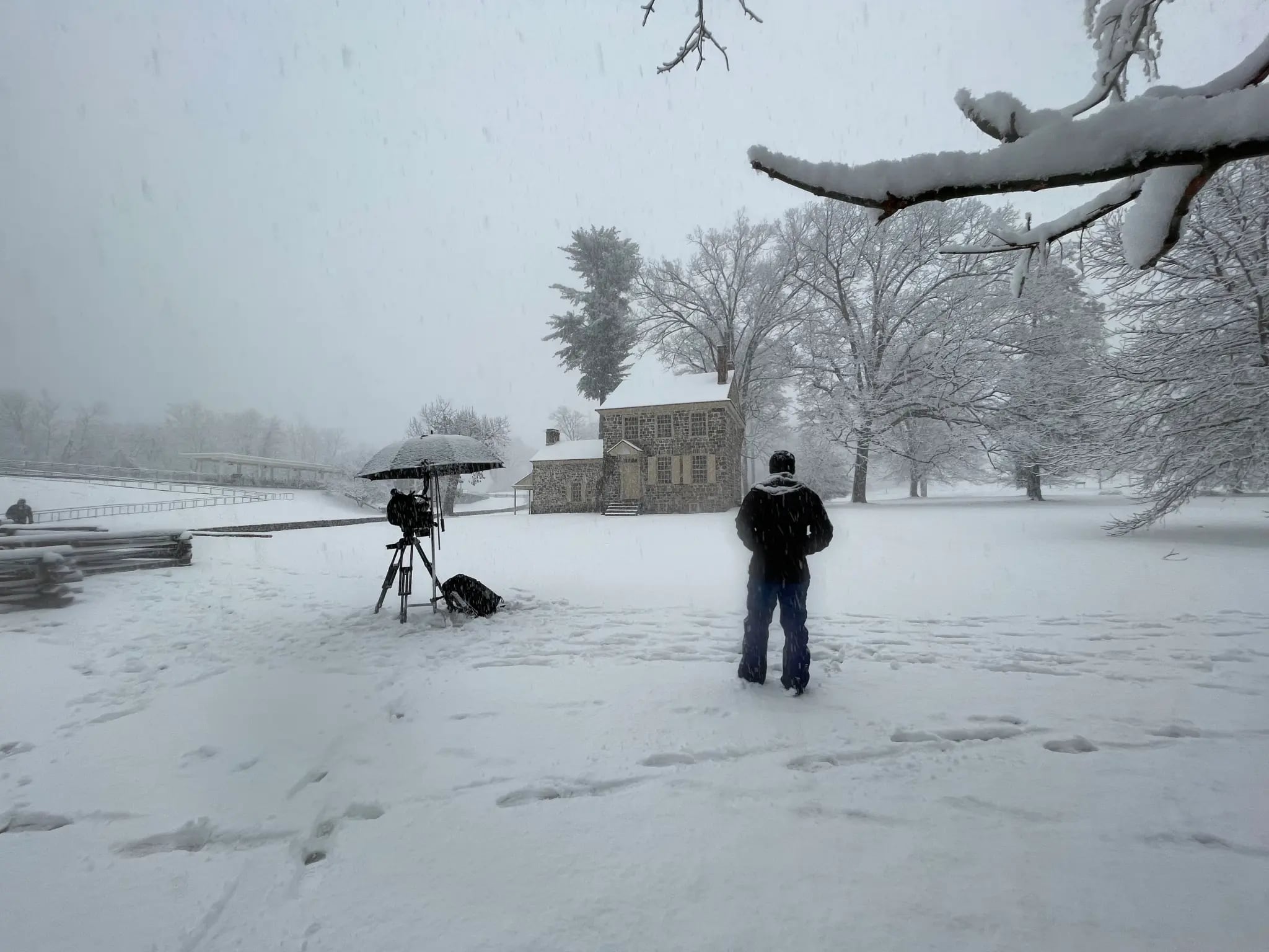 Over the course of several years, the trio shot original footage of nearly 100 locations within the original 13 colonies, as well as in London and the English countryside.