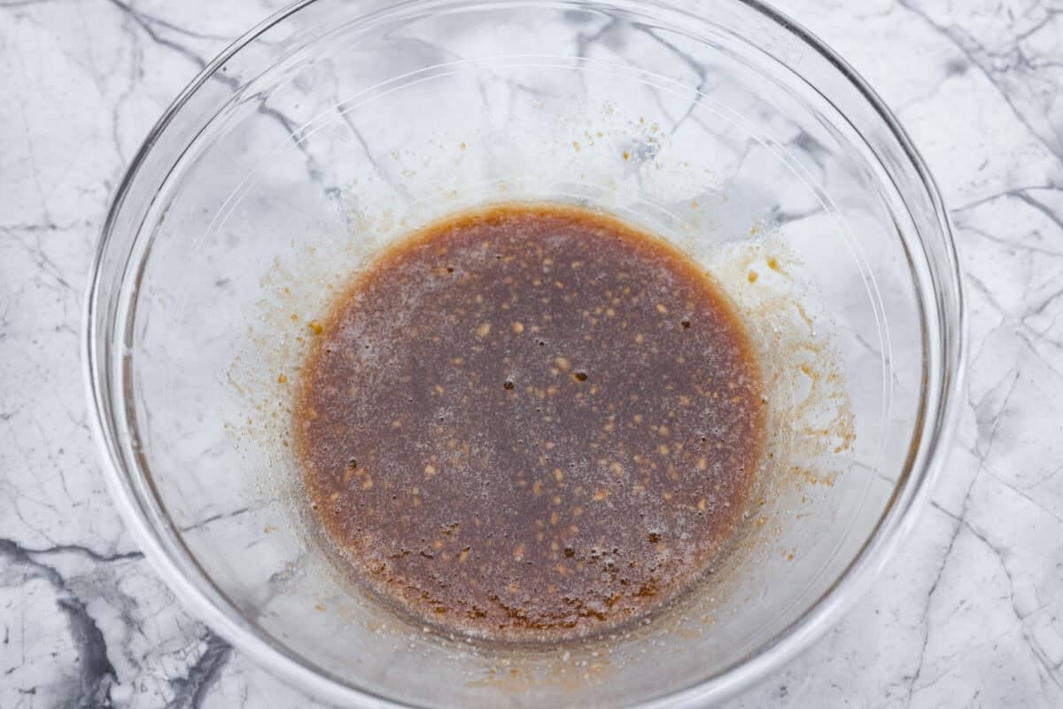 - Make the Sauce: Preheat the oven to 375ºF. Spray a 2-quart baking dish with non-stick cooking spray and set aside. In a large bowl, whisk the melted butter, light brown sugar, soy sauce, garlic powder, and onion powder.