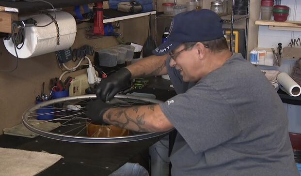 Navy veteran Chuck Reeves overcame homelessness to provide repaired bikes for other veterans in need.